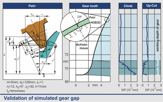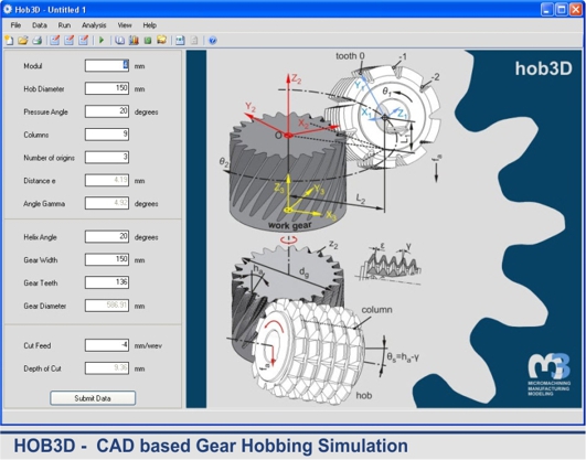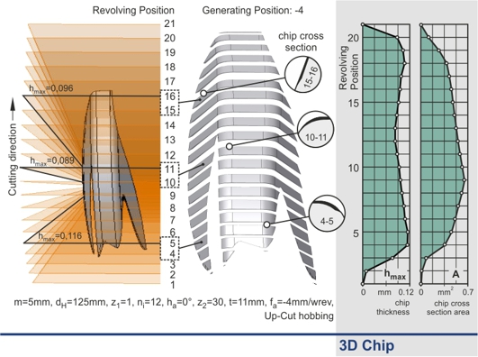 This algorithm is supported by a universal and modular code as well as by a user friendly graphical interface, for pre- and postprocessing user interactions. The resulting 3D data allow the effective utilization for further research such as prediction of the cutting forces course, tool stresses, and wear development as well as the optimization of the gear hobbing process.